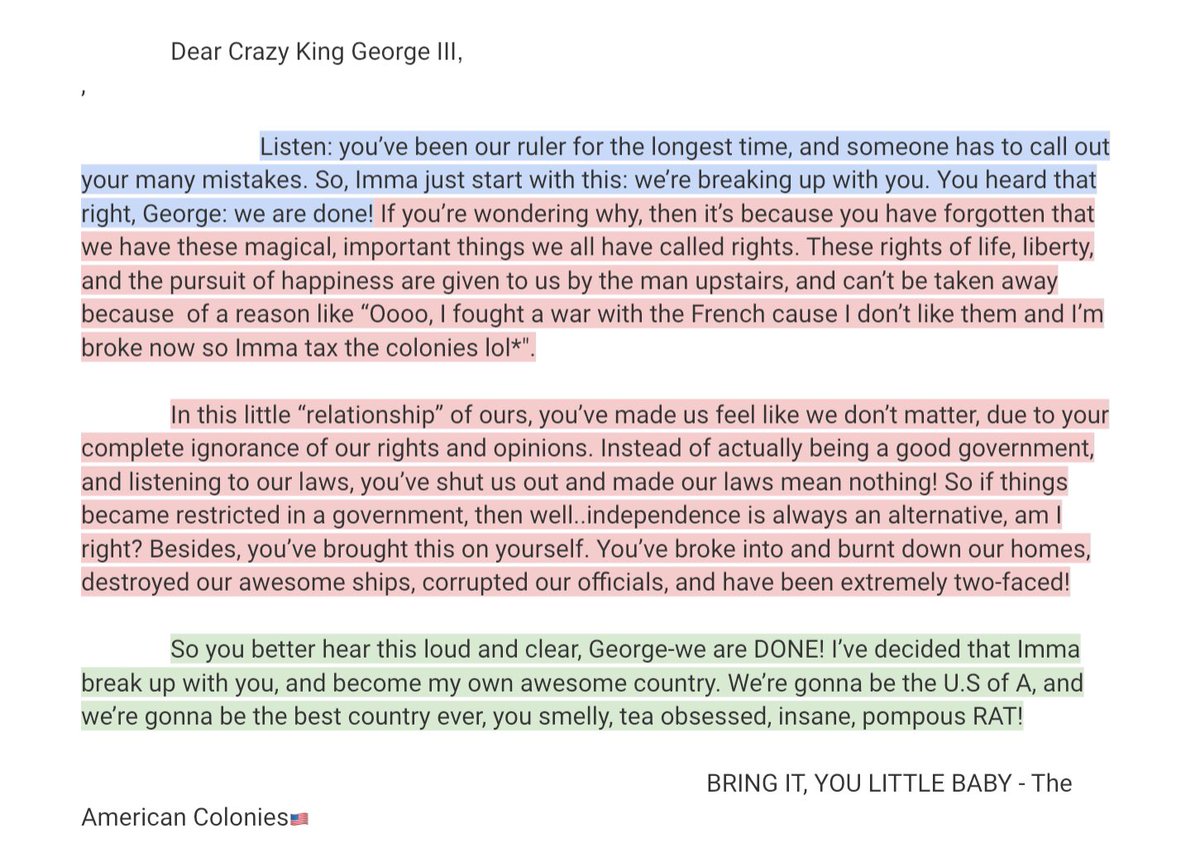 تويتر The F على تويتر My Daughter Had An Assignment In Her Civics Class Where She Had To Write A Letter As A Colonist Breaking Up With King George Iii This Is